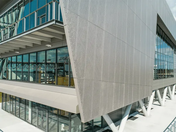 EMA-7: Wall Installation – Offset Angle BracketThe aluminum composite panel primarily consists of the panel, reinforcement ribs, and angle brackets. Typically, the edges of the panel are folded, and the hangers are connected to the panel with blind rivets. The panel is connected to the framework through the hangers, and bolts are welded to the back of the panel, connecting the reinforcement ribs and the panel to form a robust assembly. The reinforcement ribs enhance the rigidity of the aluminum composite panel, ensuring its resistance to wind pressure and maintaining flatness during prolonged use.Case Studies